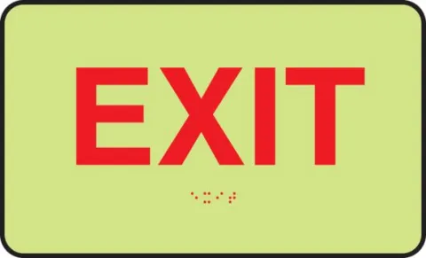 Glow signs are identifiable in power outagesUse braille signs to inform blind personnel where to find exitsGlow material helps improve safety during power loss