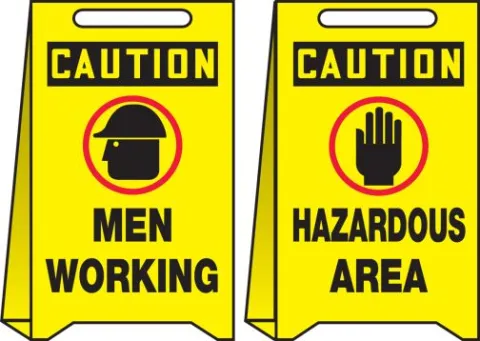 Accuform PFE403 20" x 12" OSHA Caution Reversible Fold-Up Floor Sign: Men Working - Hazardous Area