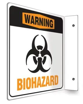 Warn staff of a biological hazard from the front or side with an OSHA Projection sign.