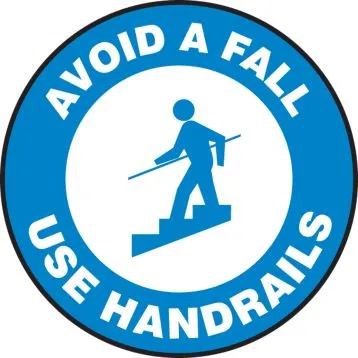Accuform PSW723 17" Pavement Print Sign: Avoid A Fall Use Handrails
