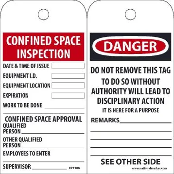 6" x 3" Unrippable Vinyl Danger Confined Space Tag