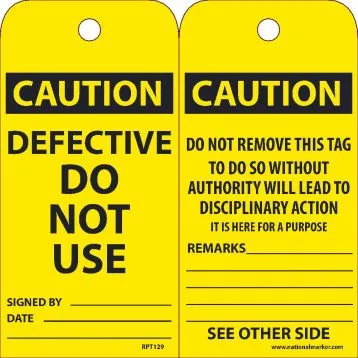 6" x 3" Unrippable Vinyl Caution Defective Do Not Use Tag
