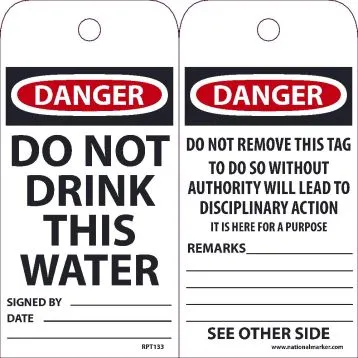 6" x 3" Unrippable Vinyl Danger Do Not Drink This Water Tag