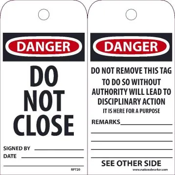 6" x 3" Unrippable Vinyl Danger Do Not Close Tag