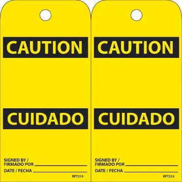 6" x 3" Unrippable Vinyl Caution BILINGUAL TAG