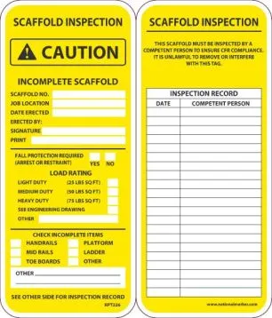6" x 3" Unrippable Vinyl Incomplete Scaffold Tag