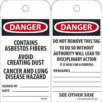 6" x 3" Danger Contains Asbestos Fibers Tag