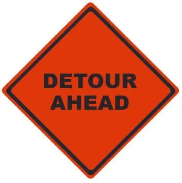 Make sure that no driver is unaware of an alteration in their route. Notify drivers of an impending detour using this reflective roll-up detour ahead sign.