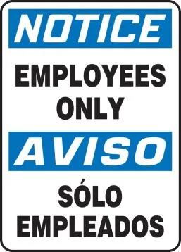 Avoid safety hazards by posting sign in a visible spot Use English and Spanish to keep non-employees out Bilingual signs help protect all your workers Traditional OSHA-style signs, tags and labels are the most widely recognized design format in the industry Notice header indicates information considered to be important but not hazard-related
