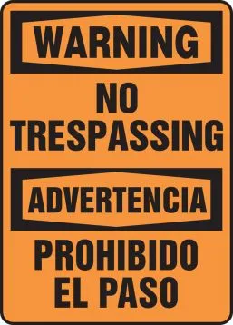 Use English and Spanish to keep trespassers at bay with this OSHA-compliant sign.