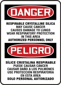 Accuform SBMCAW045VA 14" x 10" OSHA Danger Safety Sign: Respirable Crystalline Silica - May Cause Cancer - Causes Damage To Lungs - Wear Respiratory Protection In This Area, Aluminum, Bilingual - Spanish/English