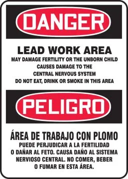 Accuform SBMCAW188XL 14" x 10" Bilingual OSHA Danger Safety Sign: Lead Work Area, Aluma-Lite, Bilingual - Spanish/English