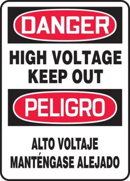Bilingual English/Spanish sign ensures that all employees can read warning against entering high voltage areas Product available in two sizes and eight materials, including Dura-Plastic™ which is guaranteed for indoor and outdoor use for 7 years Bilingual signs help protect all your workers Traditional OSHA-style signs, tags and labels are the most widely recognized design format in the industry Danger header indicates a hazardous situation that, if not avoided, will result in death or serious injury
