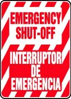 14" x 10" NO HEADER: EMERGENCY SHUT-OFF (BILINGUAL), Plastic
