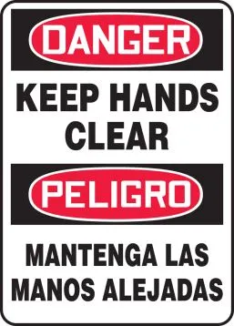 14" x 10" Bilingual OSHA Danger Safety Sign - Keep Hands Clear, Adhesive Vinyl