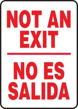 14" x 10" Bilingual Spanish Safety Sign - Not An Exit / No Es Salida, Adhesive Vinyl