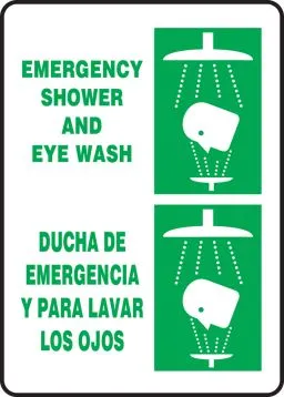 14" x 10" Bilingual Safety Sign: Emergency Shower And Eye Wash, Plastic