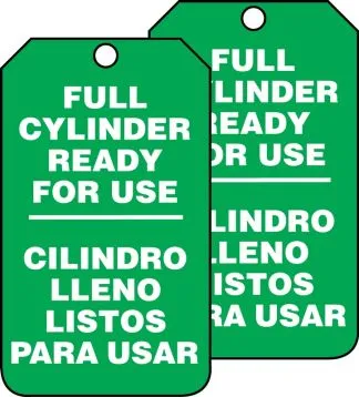 Cylinder Status Bilingual Safety Tag: Full Cylinder Ready For Use, RP-Plastic, 25/PK