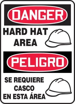 Ensure that English and Spanish speaking employees know to wear their hard hats Alert others to the potential risks in this area Bilingual signs help protect all your workers Traditional OSHA-style signs, tags and labels are the most widely recognized design format in the industry Danger header indicates a hazardous situation that, if not avoided, will result in death or serious injury