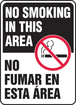14" x 10" Spanish Bilingual Smoking Control Sign: No Smoking In This Area, Plastic