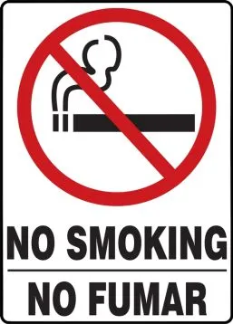 14" x 10" Bilingual Safety Sign: No Smoking (Symbol), Plastic