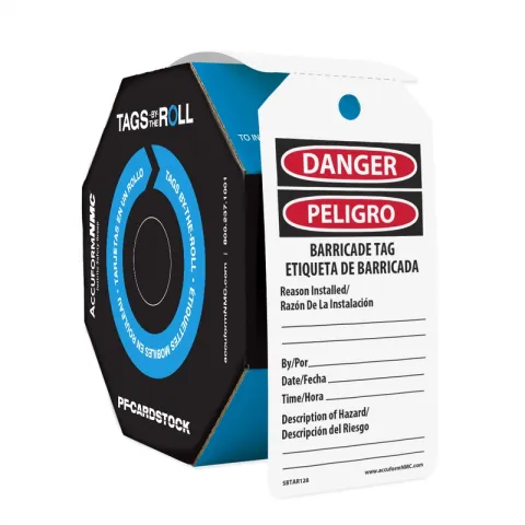 Accuform SBTAR128 Tags By-The-Roll Safety Tags: Danger/Peligro Barricade Tag