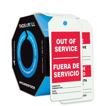 Bilingual Tags By-The-Roll - Out Of Service, PF-Cardstock, 100 PER ROLL