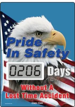 Celebrate Accident-Free Days with a patriotic Mini Digi-Day® Electronic ScoreboardEvery day counts with a versatile scoreboard that fits perfectly in a variety of settings. The Mini Digi-Day® Electronic Scoreboard is an excellent way to make a safety a priority in your workplace and track safe days. This compact and cordless safety scoreboard can be displayed on a desktop, shelf, table, wall, or any indoor space to promote safety awareness. It is ideal for office environments such as the front lobby, reception desk, and customer service areas. The Mini Digi-Day® Electronic Scoreboard shows that safety counts at your workplace.