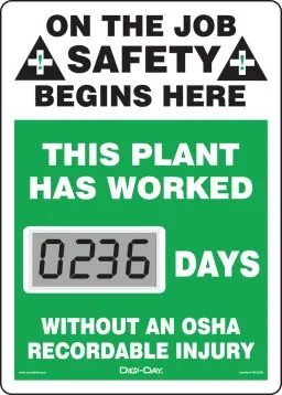 Celebrate Days without an OSHA Recordable Injury with Mini Digi-Day® Electronic ScoreboardsEvery day counts with a versatile scoreboard that fits perfectly in a variety of settings. The Mini Digi-Day® Electronic Scoreboard is an excellent way to make a safety a priority in your workplace and track days without an OSHA recordable injury. This compact and cordless safety scoreboard can be displayed on a desktop, shelf, table, wall, or any indoor space to promote safety awareness. It is ideal for office environments such as the front lobby, reception desk, and customer service areas. The Mini Digi-Day® Electronic Scoreboard shows that safety counts at your workplace.