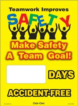14" x 10" Mini Digi-Day Magnetic Faces: Teamwork Improves Safety - Make Safety A Team Goal - _ Days Accident Free