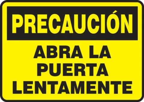 10" x 14" OSHA Caution Safety Sign: Open Door Slowly, Aluma-Lite, Spanish