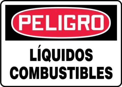 10" x 14" OSHA Danger Safety Sign: Combustible Liquids, Adhesive Dura-Vinyl, Spanish