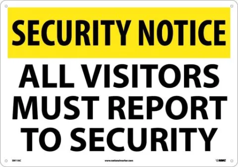 NMC SN11RC 14" x 20" Rigid Plastic Security Notice All Visitors Must Report to Security Sign