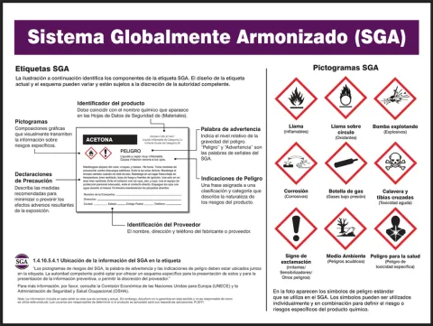 The 18" x 24" plastic laminate poster displays easy-to-understand information, separated into sections, on GHS labels and pictograms.