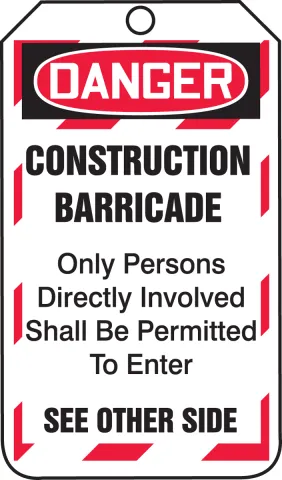 Accuform TAB102CTP Barricade Status Safety Tag: Danger- Construction Barricade