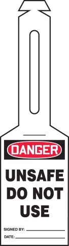 This Loop 'n Strap tag is ideal for tagging unsafe equipment quickly to ensure safety. Loop 'n Strap™ tags secure quickly and are made of durable materials Purchase in packages of 25 durable tags Prevent the potential for accidental injury and property damage Alert, call out, or draw attention to temporary hazards Required critical tool in safety, performance, and maintenance operations Traditional OSHA-style signs, tags and labels are the most widely recognized design format in the industry Danger header indicates a hazardous situation that, if not avoided, will result in death or serious injury Unit of Measure: 25/Pack
