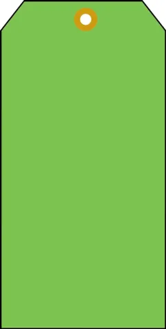 13 pt. fluorescent cardstock tags have patch-reinforced 1/4-inch hole. Available in many different colors Available in many different sizes Size: 5-1/4" x 2-5/8" Unit of Measure: 100/Pack Option: Hole with 12" Galvanized Wire Color: Fluorescent Green