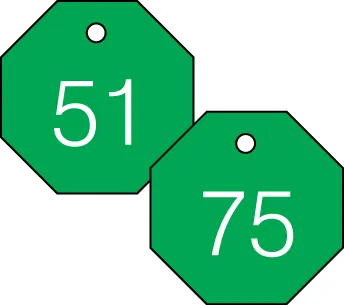 Plastic tags have engraved numbers. Coordinate colors for additional coding purposes to provide a clean, uniform look throughout your facility.