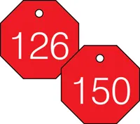 Plastic tags have engraved numbers. Coordinate colors for additional coding purposes to provide a clean, uniform look throughout your facility.