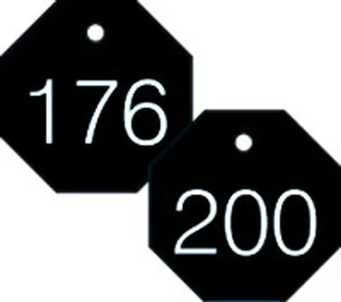 Plastic tags have engraved numbers. Coordinate colors for additional coding purposes to provide a clean, uniform look throughout your facility.