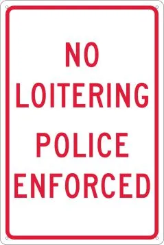 Clear your property of loiterers once and for all. Post this red lettered sign to let everyone know that loitering is not permitted.