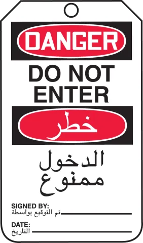 Accuform TMA103CTP Arabic Bilingual OSHA Danger Safety Tags: Do Not Enter