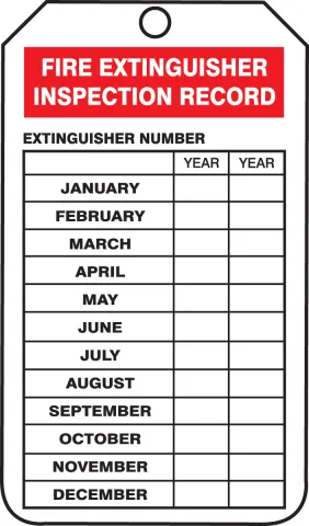 Identify safety inspection dates withe records attached to fire extinguisher.