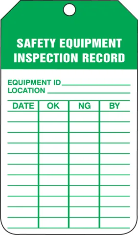 Accuform TRS250PTM Equipment Status Safety Tag: Safety Equipment Inspection Record