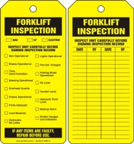 Accuform TRS314PTM 8-1/2" x 3-7/8" Jumbo Inspection Status Safety Tag: Forklift Inspection