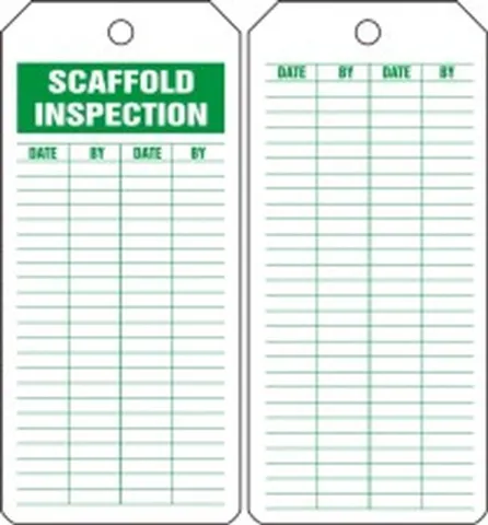 Accuform TRS325CTP 8-1/2" x 3-7/8" Jumbo Scaffold Status Safety Tag: Scaffold Inspection