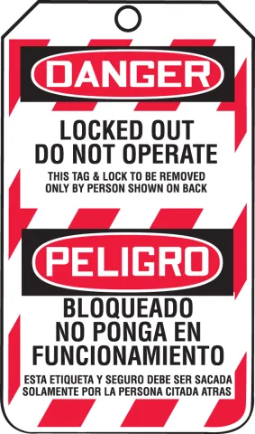 Accuform TSP103PTM Bilingual OSHA Danger Lockout Tag: Locked Out - Do Not Operate