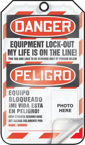 Accuform TSP107LPM Bilingual OSHA Danger Lockout Tag: Equipment Lock-Out - My Life Is On The Line!