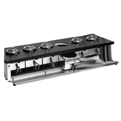 Multi-element combination heating mantle units are ideal for repetitive extracting, refluxing and distilling procedures. Lower profile, safer, multi-place Combo Mantle that allows user to easily replace an element in a matter of minutes, should that element fail. By unscrewing two captive screws and lowering front panel of cabinet, the disposable element containers can be replaced by detaching the two lead wires and sliding the containers out. A new unit can be installed by reversing the procedure. These elements act as spill containment chambers so a spill does not damage other parts of mantle.