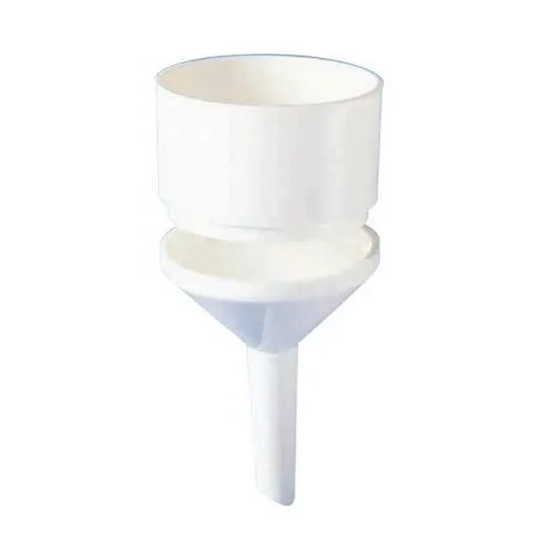 Lightweight polypropylene funnels. Bottom and top separate for easy cleaning. HDPE perforated filter plate. Steam autoclavable at 121 deg C (250 deg F).